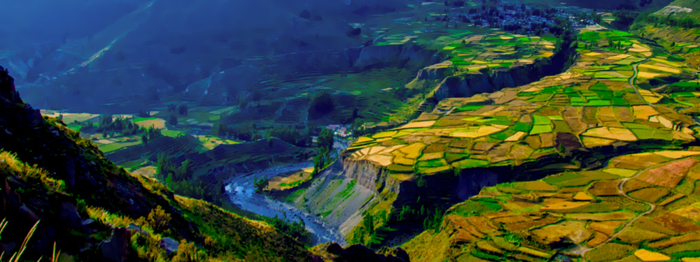 5:00am. Group meeting in the main patio of the hotel. We’ll start the ascent at 5:15am and hike for 3 hours (7km) from the Sangalle oasis (2180 mt ) to Cabanaconde.( 3287 mt)After eating breakfast in Cabanaconde, we will board our private bus to Chivay, making two stops on the way: one at the Antahuilque viewpoint (for a panorama of the valley´s villages and pre-Incan terraces), and the other stop in the town of Maca (to see its colonial church and appreciate its artisan goods, domesticated eagles and for those interested, drink a pisco or colca sour made with Zancayo cactus fruit).12:00pm We will enjoy the relaxing medicinal 38°c hot springs on the shores of the Colca River in Yanque for 1 hour. (of optional way)