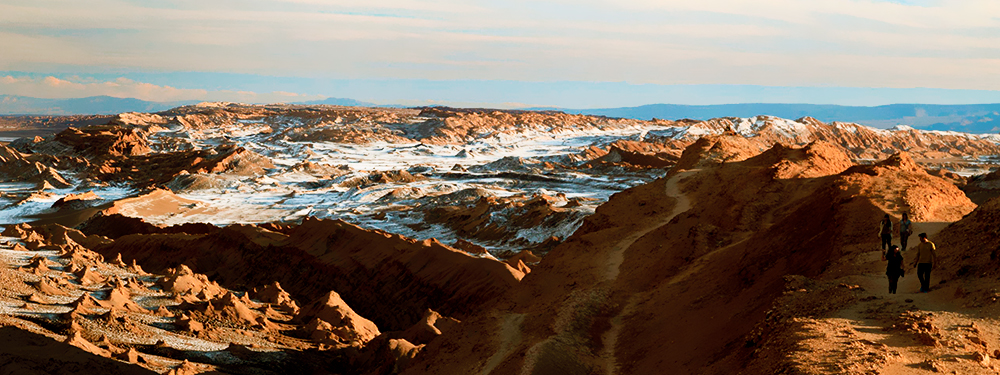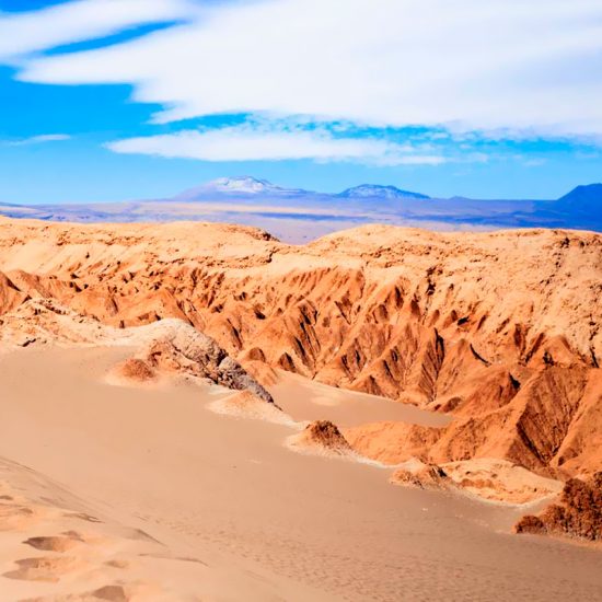 Breakfast at the hotel and transfer to the airport to board the flight to Calama. Meet and greet and transfer to San Pedro de Atacama through the Domeyko and the salty mountain range. In the afternoon, visit the salty mountain range, the Marte Valley (also called Death Valley) and the Moon Valley to admire the spectacular sunset reflected on this wonderful landscape – nature’s own light show. Return to your hotel. Overnight in selected hotel.