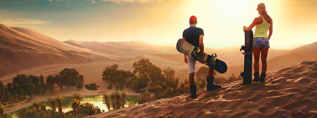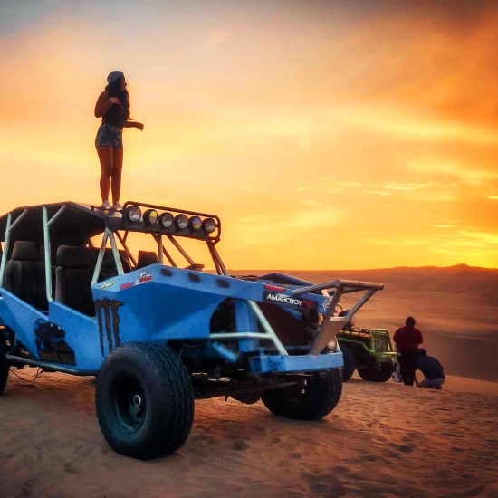 The dune buggy and sandboarding tour in Huacachina Ica is an amazing thrill ride. But this is more than just a thrill ride: the gigantic sand dunes are beautiful, surreal and mesmerizing. A tour into the desert feels like an “out of this world” experience, almost like visiting the surface of another planet.The buggies include a driver and are shared with other tourists. On this buggy tour you will surf through the desert, making several stops so you can try sandboarding, take pictures, and watch the sunset. Sandboarding is a sport that you can do with little or no experience at all. You can go lying down on the board and using your feet to turn (or not!).