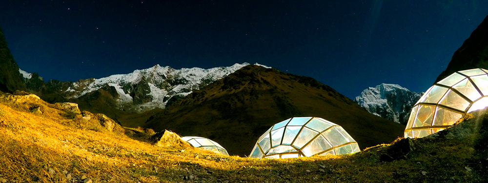 - Night 1: Relax on your soft bed in our state-of-the-art Sky Camp under the watchful eye of Apu Salkantay on one side and Apu Humantay on the other. Spend as many hours as you would like star-gazing through your elegant glass ceiling!